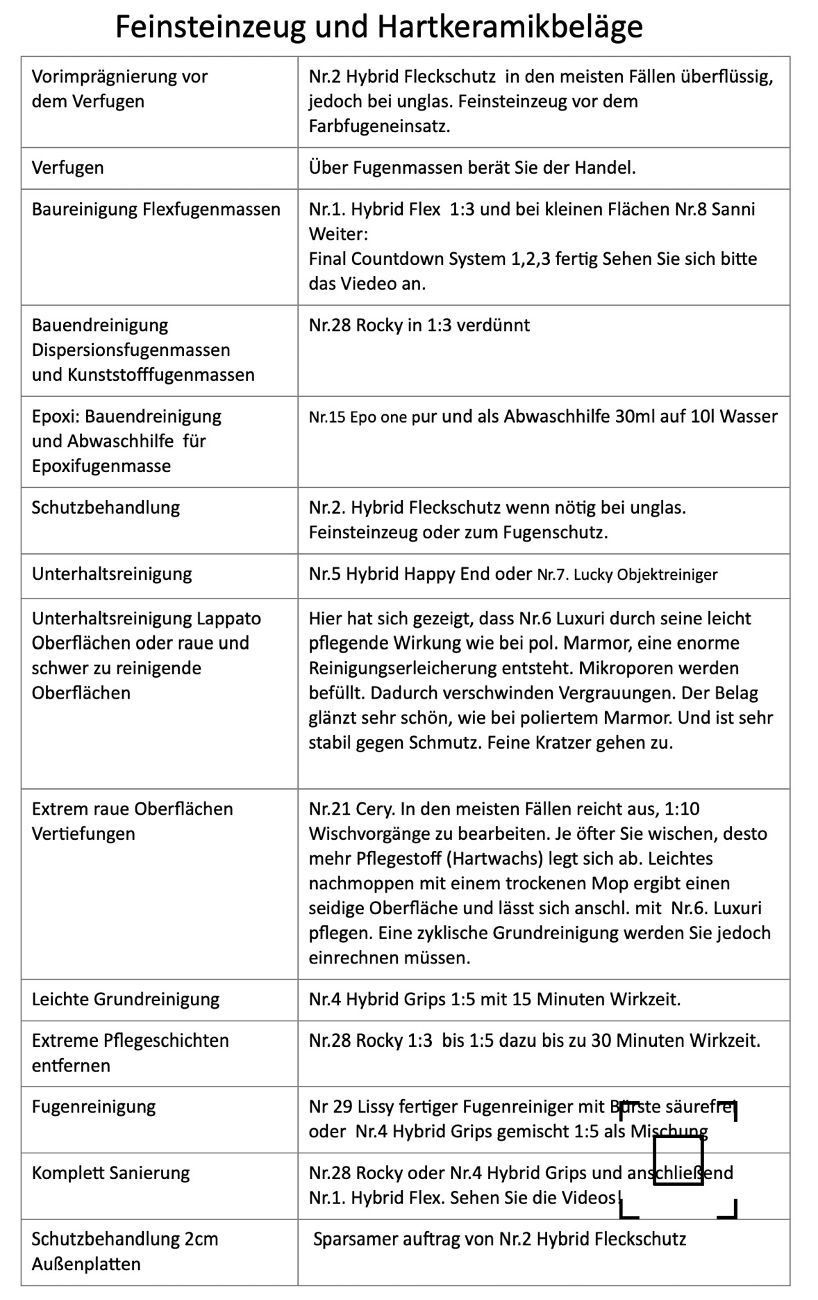 Reinigungs- und Behandlungsempfehlung
