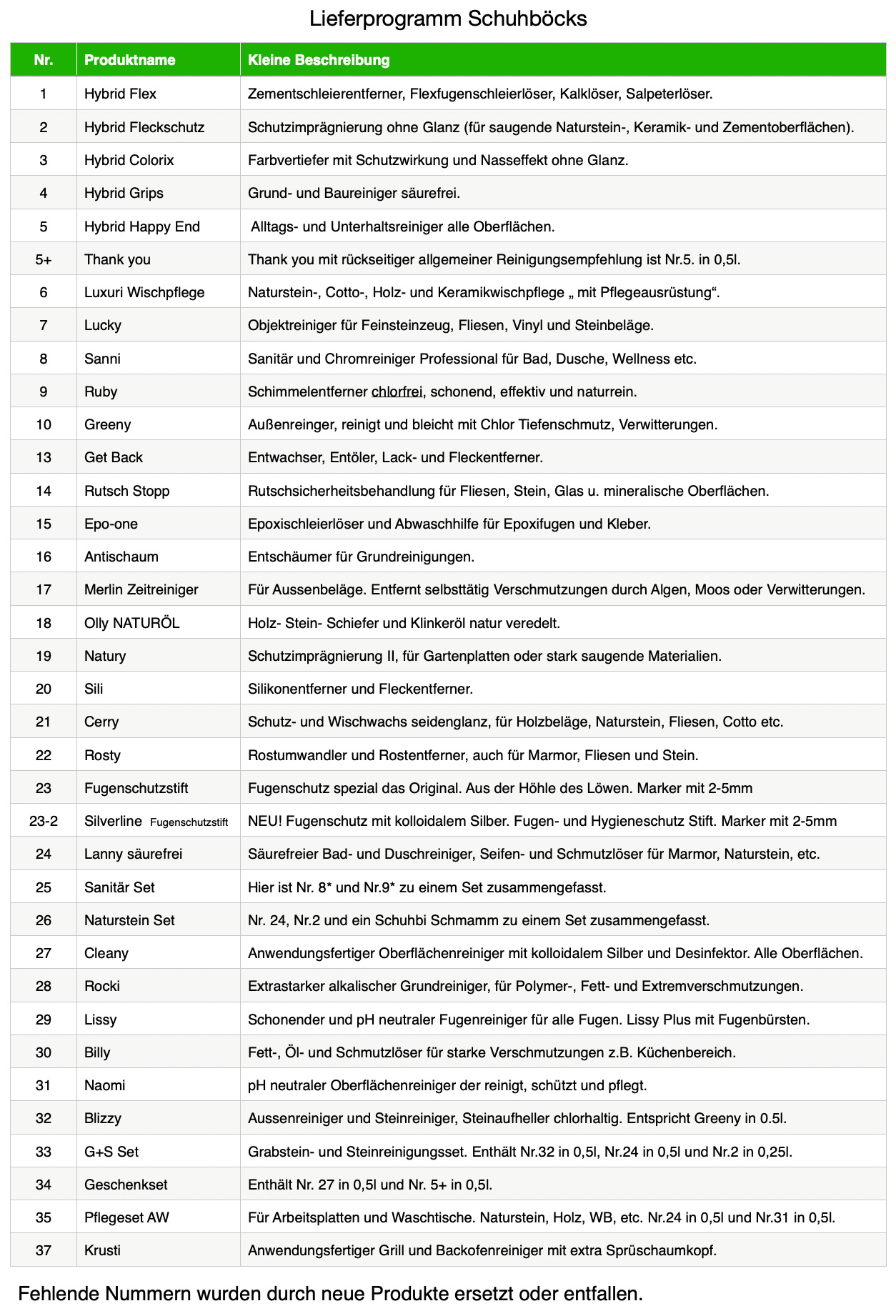 Lieferprogrammzum nachsehen