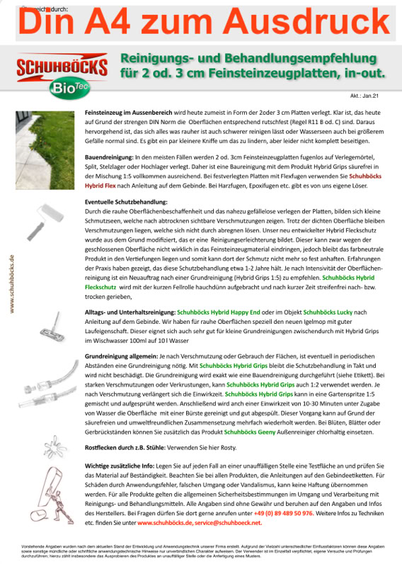Zementoberflächen, Platten, Pflaster etc.